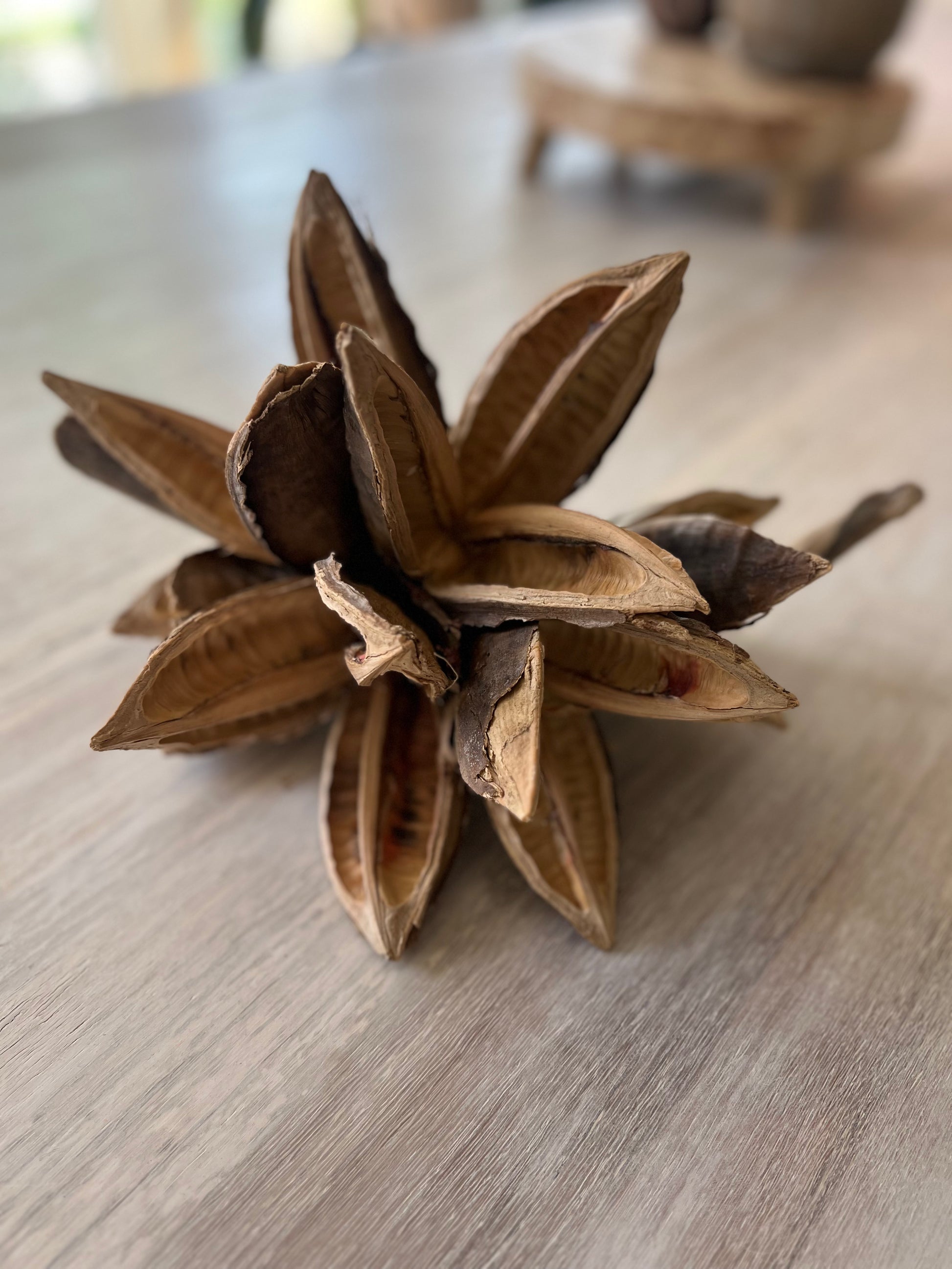 Each star pod showcases a distinct star-like shape and its rich, warm colors blend perfectly fo autumn and winter decor.