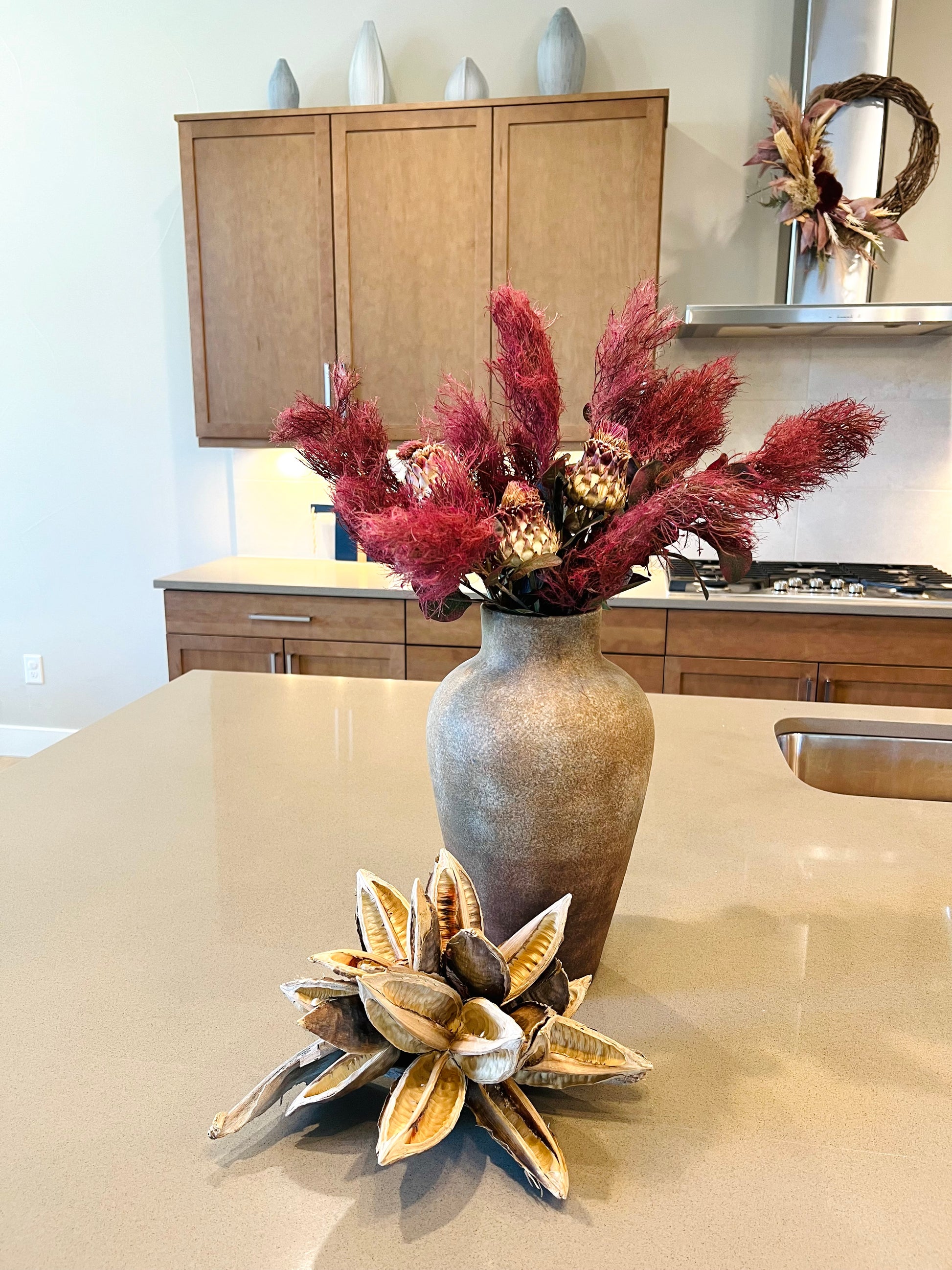 Use your fall stems and branches to create stunning fall centerpieces for your dining table. Each stem can easily be molded to fit any vase.